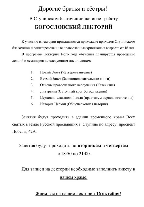 | ![]() Высокопреосвященный Аксий, архиепископ Подольский и Люберецкий, управляющий Подольской епархией Сайты приходов благочиния![]() Наши друзья![]() Полезные ссылки![]() ПоздравленияДуховенство и миряне Ступинского благочиния сердечно поздравляютпротоиерея Игоря Горячева, ![]() отмечающего 2 октября тезоименитство, протоиерея Дмитрия Бороздина, ![]() отмечающего 3 октября день рождения и 4 октября тезоименитство, и желают Божией помощи в дальнейших трудах на благо Святой Церкви! |