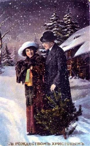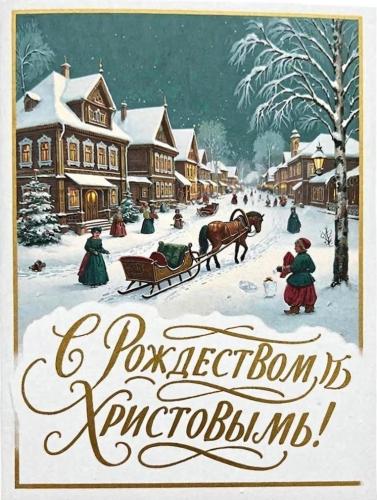 В Россию открытки пришли в 1871 году. Сначала их называли «открытыми письмами», ведь они не требовали конверта, и их содержание было доступно каждому. В создании открыток участвовали прославленные художники Илья Репин, Константин Маковский, Елизавета Бём, Александр Бенуа, Михаил Врубель. Открытки рассылались накануне праздника Рождества Христова по адресам родных и знакомых, а также вместе с подарком вручались сослуживцам и начальникам. После революции рождественскую открытку сменила новогодняя, но даже в годы гонений на Церковь и официального запрета праздновать Рождество Христово верующие художники продолжали создавать картины и открытки, изображающие события праздника.