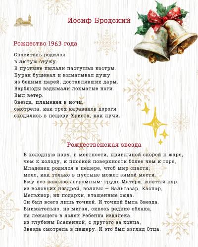 Стихотворения русских классиков о РождествеО Рождестве Христовом нередко размышляли и поэты прошлых веков: М.Ю.Лермонтов и Иосиф Бродский, А.А.Фет и Борис Пастернак. Сегодня делимся подборкой стихотворений русских классиков. В преддверии праздника можно повторить знакомые строки или открыть для себя новое произведение. Есть ли у вас любимое стихотворение о Рождестве?