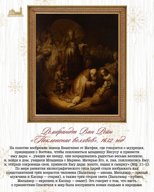 Рождество на полотнах великих художниковСобытия Рождества Христова во все времена вдохновляли художников на создание картин, впоследствии признанных шедеврами мирового искусства. «Таинство странное», как называют чудо рождения Спасителя ирмосы рождественского канона, на полотнах творцов предстаёт по-разному: одни строго следуют иконописным канонам или правилам фресковой живописи, другие стремятся внести что-то новое и подчеркнуть человеческое, словно «дорисовать» лаконичные евангельские сюжеты.Питер Брейгель, например, смещает акцент с главного на второстепенное, и нужно постараться, чтобы найти на его картинах Богомладенца Христа. А Питер Пауль Рубенс создал четыре картины с одним названием – «Поклонение волхвов», и одна из них хранится в Эрмитаже. Рассматривая эти шедевры живописи, можно вновь задуматься о значимости событий Рождества Христова, не оставлявших равнодушным никого из прославленных мастеров. Рождественский пост – это время создать столь же образную и исполненную евангельских смыслов картину на холсте своей души. И для этого не обязательно быть Васнецовым или Рембрандтом.